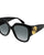 A distinctive feature of these sunglasses is the GG running logo engraved on an antique button metal plaque, inspired by Gucci's ready-to-wear collection buttons, applied on the hinge construction. The classic black frame paired with grey gradient lenses offers a timeless and versatile look suitable for various occasions.